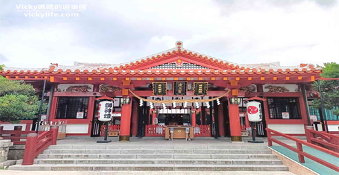 球人民及觀光客至此許願納福,祈求平安。為琉球八神社之一矗立在珊瑚礁岩上,俯視那霸港,視野遼闊。神社中供奉國土守護